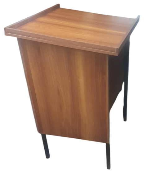המעמד של הספר תורה בבסיסו מתכת ובחלק העליון עץ סנדויץ איכותי צבע ונגה חום כהה.